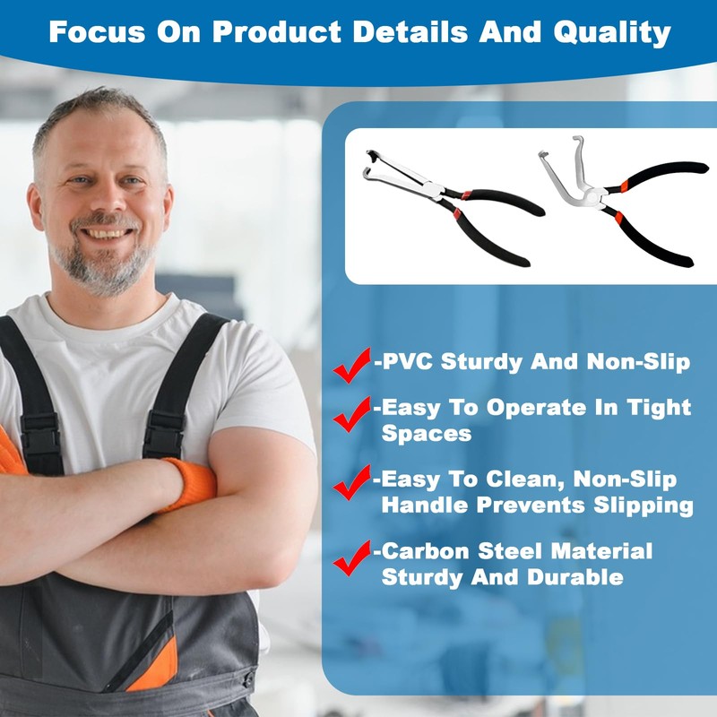 This Electrical Disconnect Pliers Set Includes One Straight Head And One Bent Head, Along With Gloves For Easy Carrying. Made From High-Quality Carbon Steel With A PVC Coating, They Are Durable And Rust-Resistant. The Innovative Curved Jaw Design Simplifies Operation In Tight Spaces, Minimizing Damage To Connectors. The Easy Three-Step Operation Enhances Efficiency. Suitable For Various Automotive Electrical Connectors, Especially Fuel Injectors And Ignition Coils, These Pliers Are Ideal For Automotive Technicians And Car Owners, And Can Also Serve As A Practical Gift.