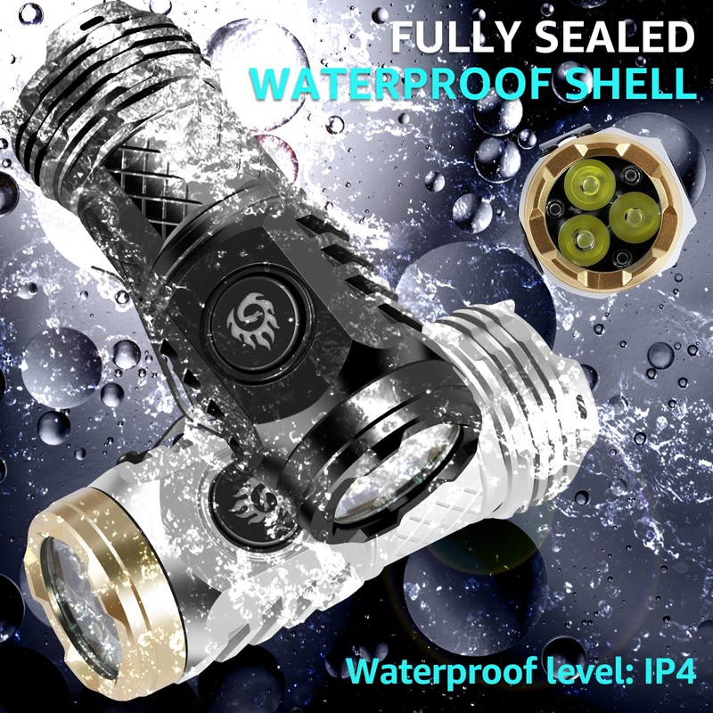 - [IPX4 Waterproof and Durable] Fully sealed waterproof case protects the internal circuitry so the torch can withstand rain and harsh weather conditions. The torch's high-strength, drop-proof body ensures long-lasting durability, impact resistance, and abrasion resistance for long-term use
