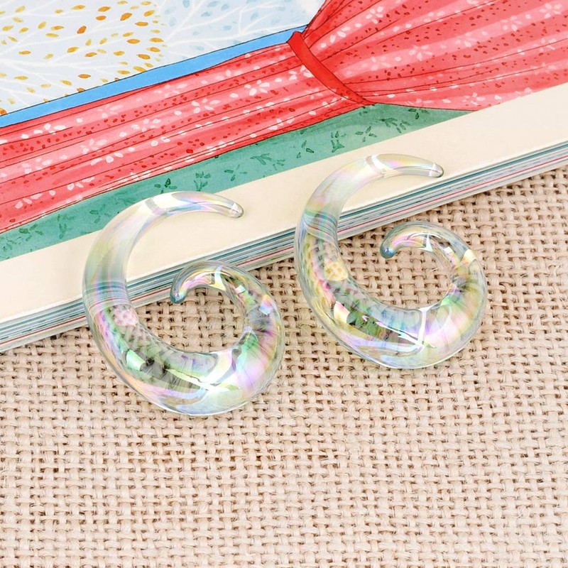 2pcs Glass Crescent Spiral Snail Tapers Piercing Hanger Stretchers Piercing Jewelry, Clear 14mm