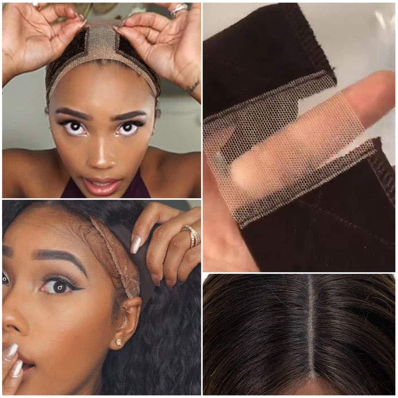 2PCS Grip Bands, Elastic Lace and Velvet Wig Head Hair Bands, Non Slip Wig Headband - Comfort Thin Women Hair Cap Adjustable Scarf for Wigs(Beige and Brown)