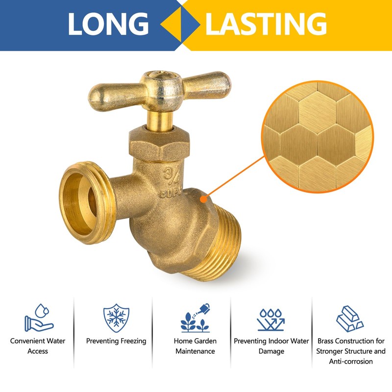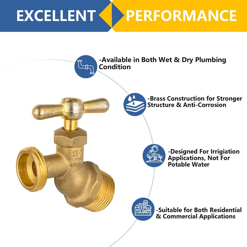 - Pipe Compatibility: Features 3/4" MIP inlet and 3/4" Male Hose Thread (MHT) outlet
