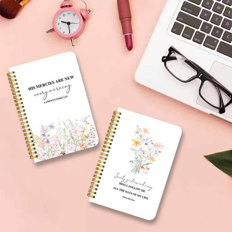 2pcs Inspirational Spiral Notebook with Inspirational Bible Verses----Surely goodness and mercy shall follow me all the days of my life---Psalms 23:6 . 50 Pages 5.5x 8.3inch, Ideal Birthday or
