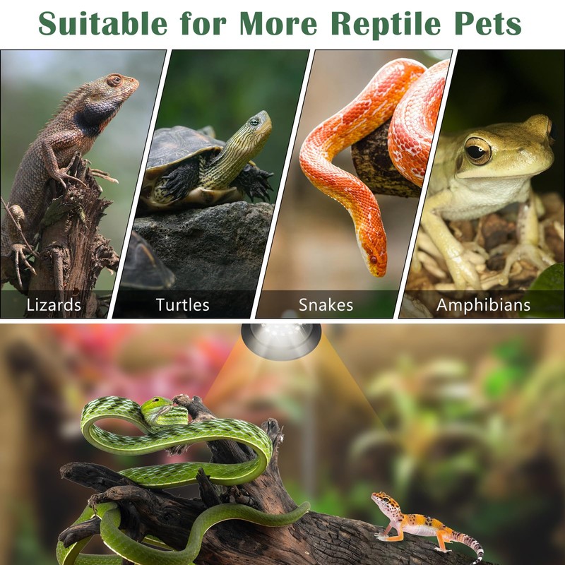 - 【Upgraded Timing Function】Our reptile lamp has a timer function, which can be set for 3, 9, 12 hours timer, easy to operate, save energy, ensure long time and stable operation, provide long time and reliable light support for your reptile pets, let them grow up healthy and happy