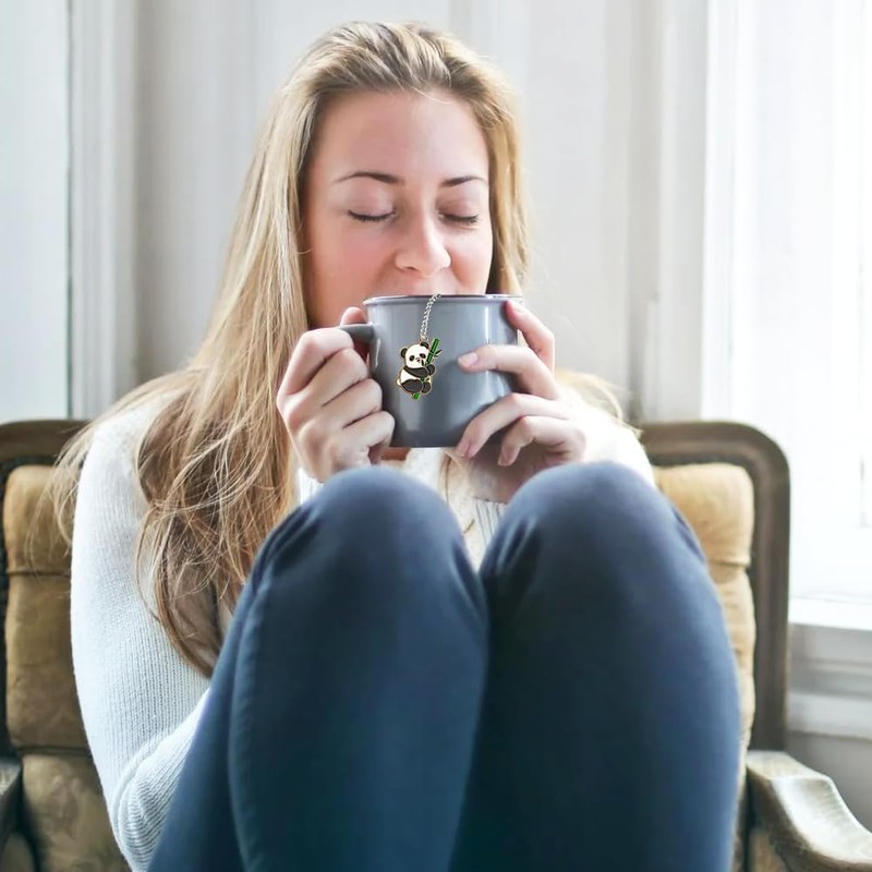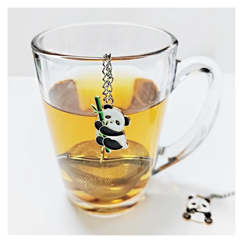 • 【CUTE PENDANT DESIGN】: These loose leaf tea infusers have cute panda pendants and heart-shaped stainless steel tea balls, and adopt a fine mesh design with even and tight mesh distribution for better natural fine filtration effect. After steeping the tea leaves, it is easy to retract and remove. And it won’t burn your fingers