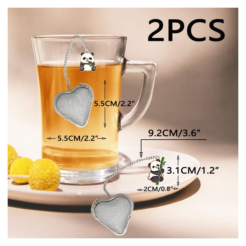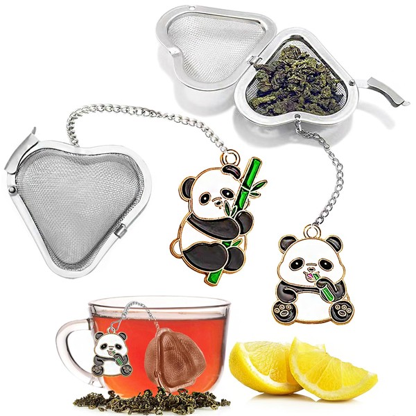 2PCS Loose Tea Infuser, Stainless Steel Heart Shaped Tea strainers Loose Leaf Tea Steeper, Cute Panda Pendant Tea diffusers for Loose Tea