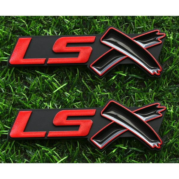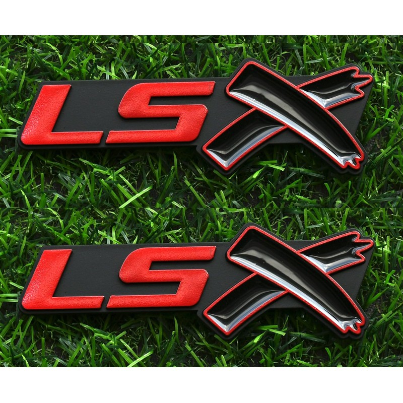 2Pcs LSX Side Rear Lid Boot Trunk 3D Emblem Badge Replacement for Chevy Camaro Corvette (Black Red)