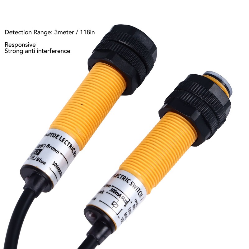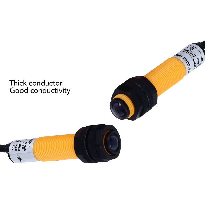 1、Accurate Detection: M12 Photoelectric switch provides high speed induction and accurate detection, ensuring efficient and reliable operation in various applications. 2、PNP Normally Open: PNP output form of this sensor offers a normally open configuration, providing easy integration with various devices and systems. 3、Wide Detection Range: With a detection range of up to 3 meter, photoelectric sensor can accurately sense objects within its range, allowing for versatile usage in different scenarios. 4、Easy Installation: With compact size and simple structure design, photoelectric switch can be easily installed and operated, saving you time and effort. 5、Durable and Sturdy: Made of ABS material, M12 photoelectric sensor is sturdy and durable, ensuring a long service life and reliable performance in harsh environments.