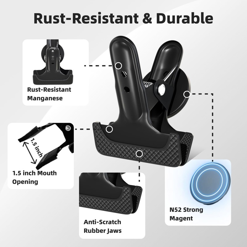 - 【Rust-Resistant Alloy Steel Magnetic Clips】-Crafted from electrophoretic-coated manganese steel, these clips resist rust, wear, and deformation. Built tough for long-term use in any environment