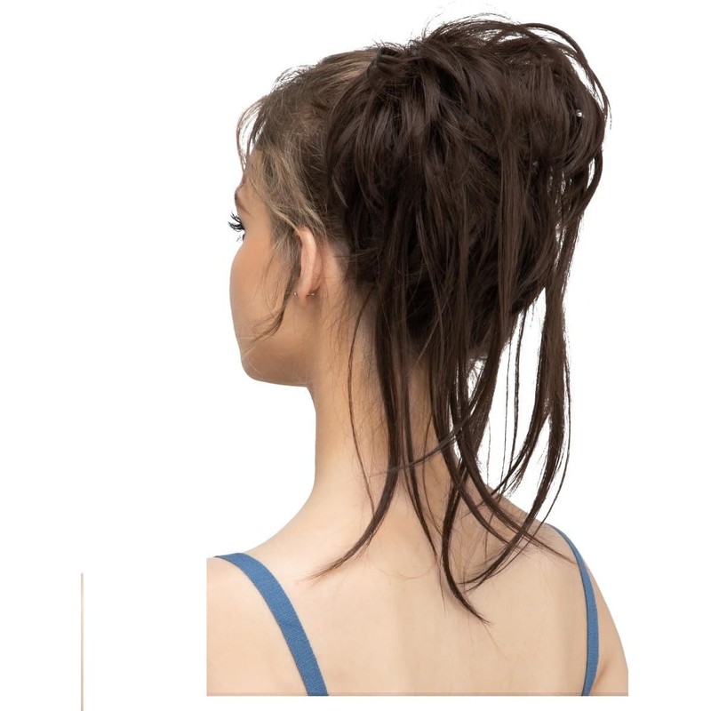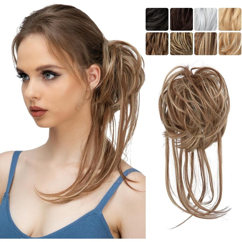 Choose the 2PCS Messy Hair Bun Piece Updo Fake Scrunchies Extension to add flair and versatility to your hairstyles, effortlessly complementing any outfit or occasion.