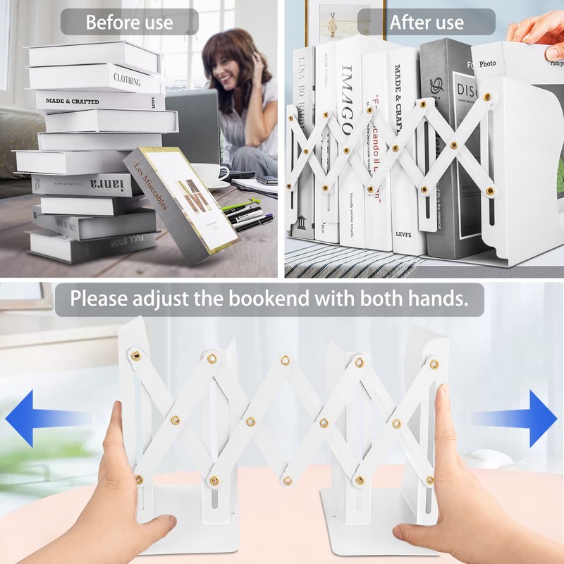 • 📚【 Large Space Book Ends 】- Expandable Range: 3.9-18.9 inch! The flexible space allows the bookend to meet different needs. You will be surprised by the powerful storage function of this bookend and will have an organized table.