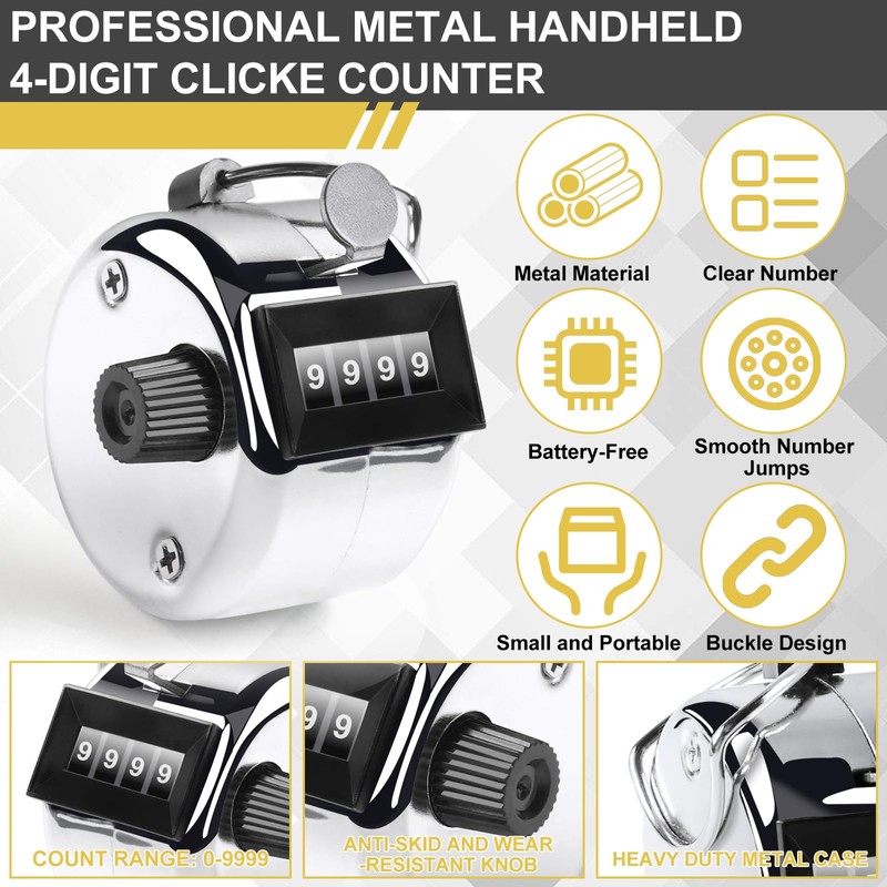 - 【Premium Craftsmanship】Crafted from a sturdy yet lightweight metal enclosure, this 4-digit hand clicker counter harmoniously combines robustness and portability. Distinct from flimsy plastic alternatives, it boasts unparalleled durability, a sleek, glistening finish, and a lifespan exceeding all expectations, making it the ultimate choice for discerning users.
