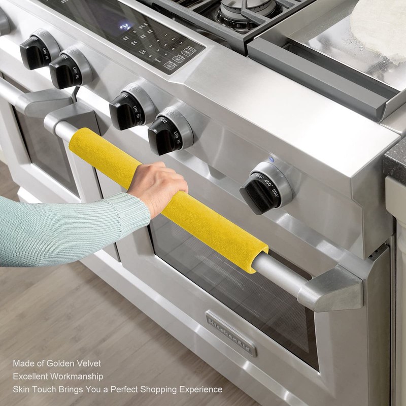 2pcs Refrigerator Door Handle Covers Soft Refrigerator Handle Gloves for Kitchen Dining Golden Flannelette (Yellow)