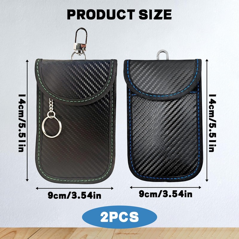 - Compact and Convenient Design: Measuring 9 x 14 cm, these car key signal blocker pouches are compact enough to fit in your pocket or bag; The set includes one blue and one green pouch for versatile use