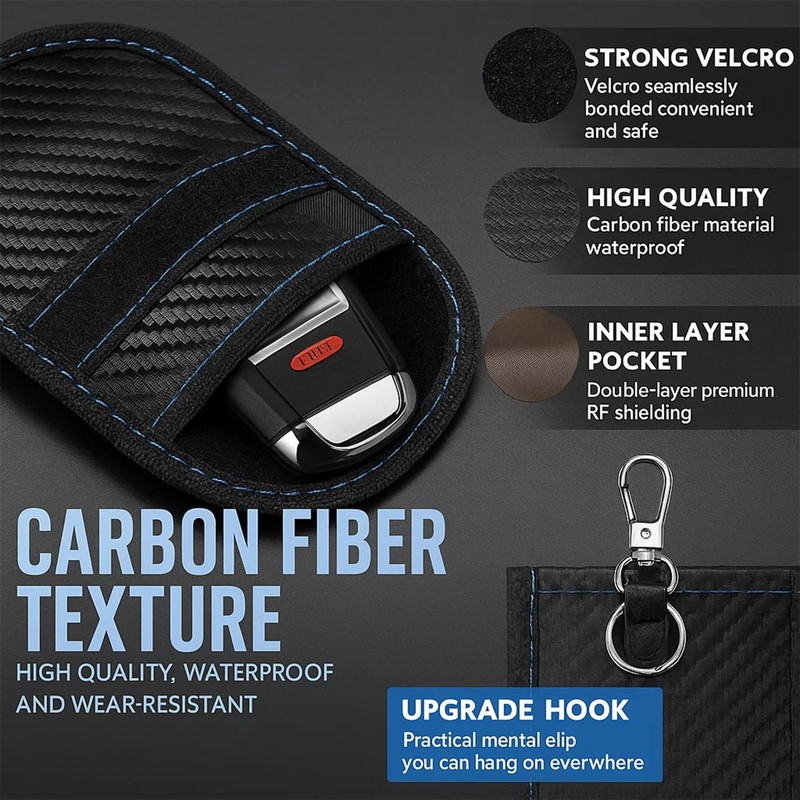- Durable Carbon Fiber Construction: Made from high-quality carbon fiber, these key pouches signal blocker are both lightweight and durable; The material provides long-lasting protection for your car keys