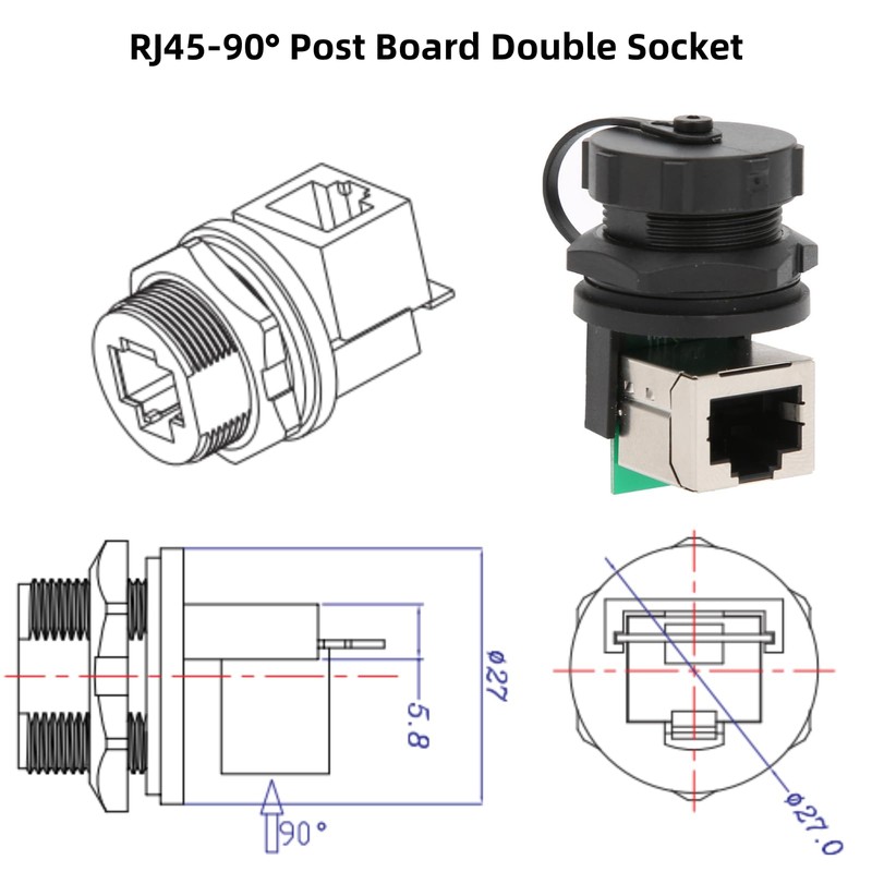2Pcs RJ45 Coupler, 8 Pin Waterproof Ethernet Coupler 90 Degree RJ45 Adapter Connector for Standard 5 Class, Super 5 Class and 6 Class Cable