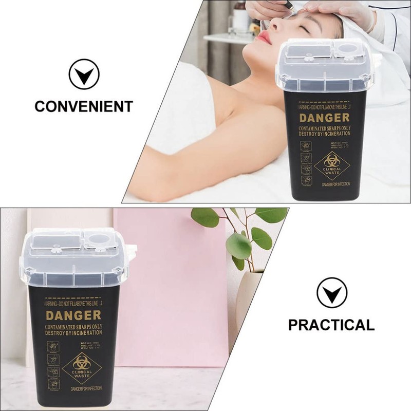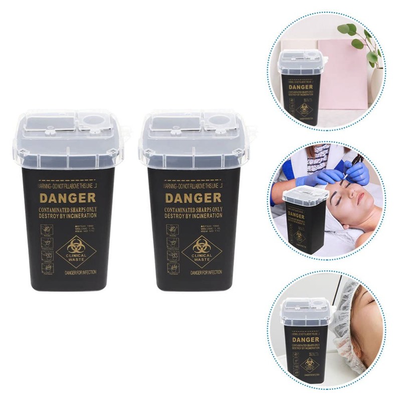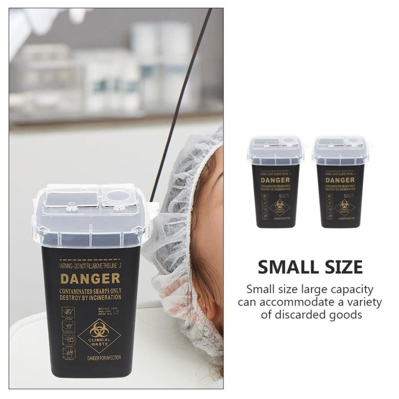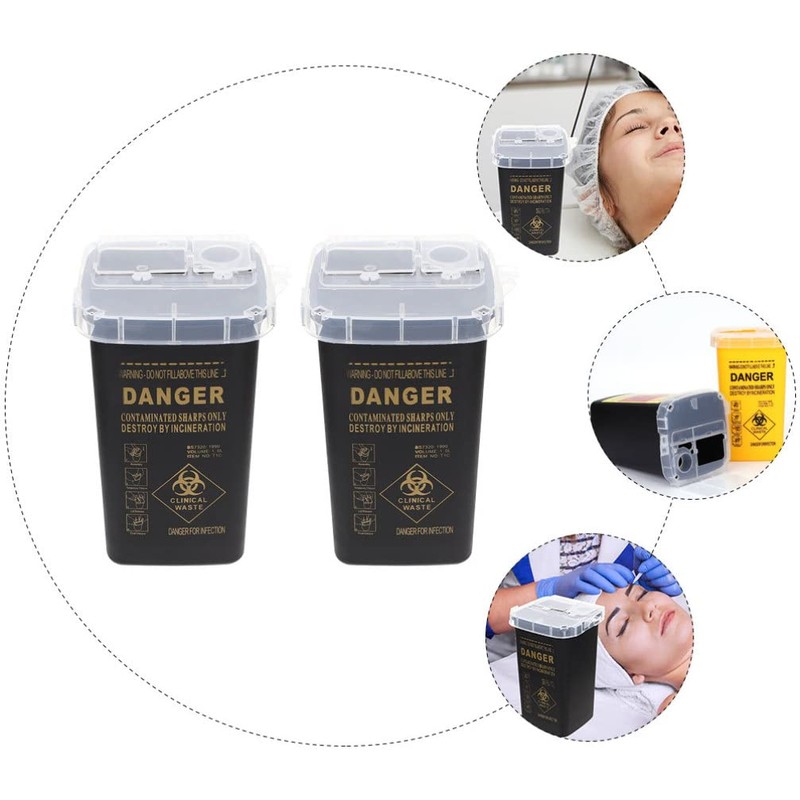 2Pcs Sharps Disposal Container Needle Disposal Bin Small Disposal Cases Sharps Container for Needles Home Tattoos Salon Use Black