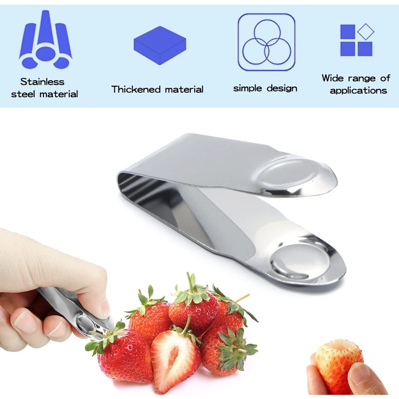 2Pcs Silver 2.8 * 1, Stainless Steel Strawberry Huller Fruit Stem Remover Home Kitchen Tools for Cherry Tomato, Fruit and Vegetable Corers