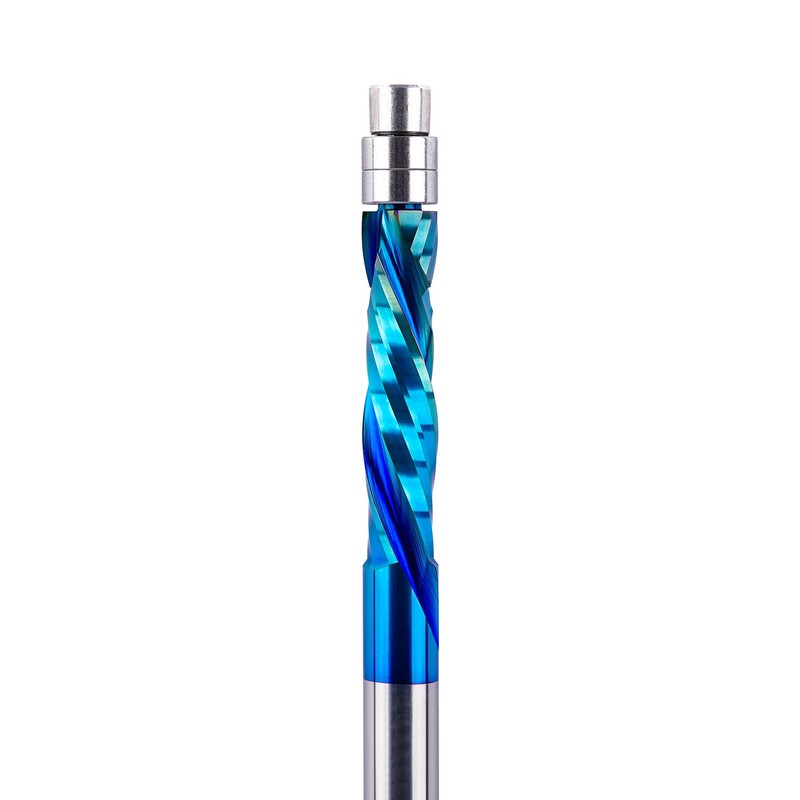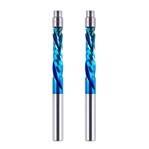 2PCS Sprial Flush Trim Router Bit Compression Cutting with Coating 1/4" Shank 1-1/8" Cutting Length Up Down Carbide Mill for Woodwork Template