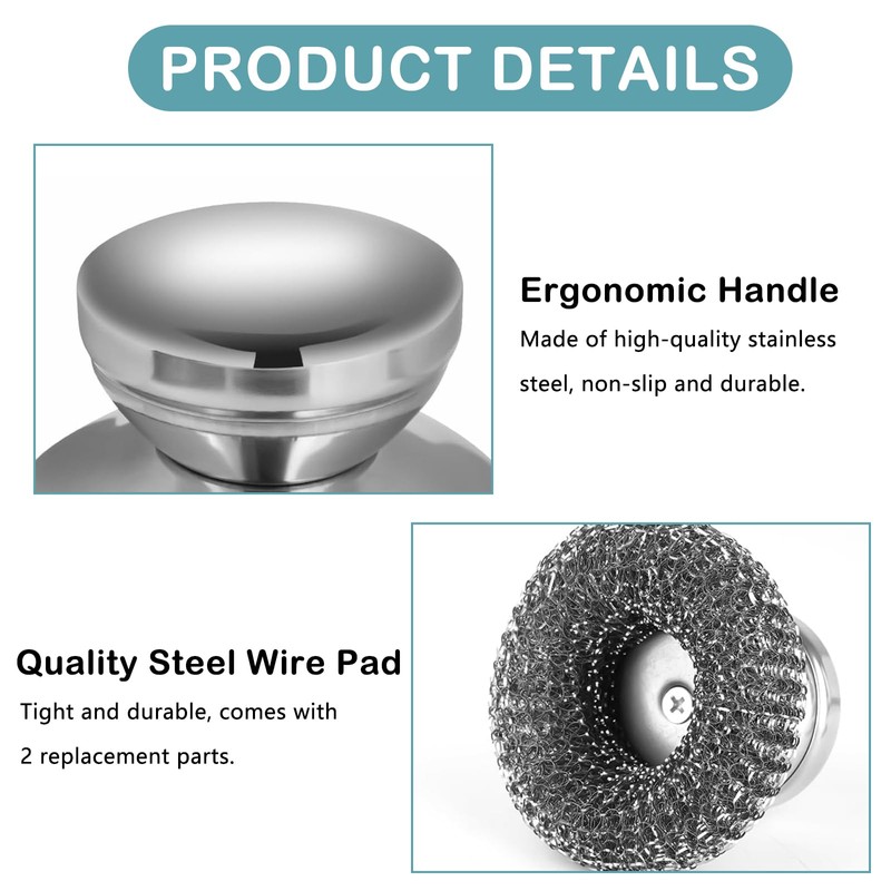 2Pcs Steel Wool Scrubber with 2 Replacement Wool Pads, Metal Dish Scrubber wi...