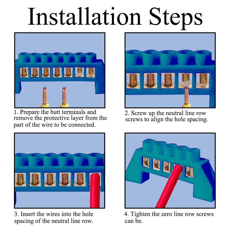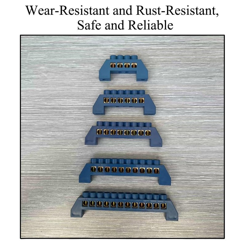 【Stable Installation】The terminal bus bar bottom seat adopts a good crimping structure and fastening device, so that the wires can be firmly kept in the wiring hole after access, and are not easy to be loosened by vibration or external force. This solid crimping method not only improves the reliability of this bridge-shaped neutral bar, but also greatly enhances the safety of the circuit system, effectively avoiding the safety hazards caused by poor contact or wire dislodgement.