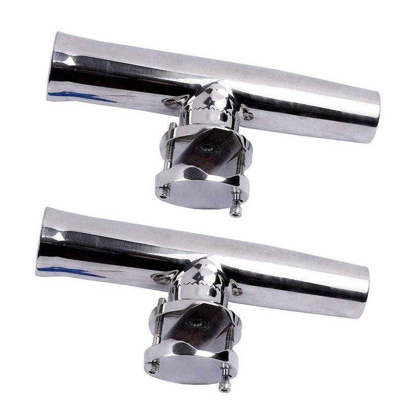 2pcs Tournament Style Fishing Rod Holder, 316 Stainless Steel Rod Holder Clamp on 1-1/4" to 2" Rails for Marine Boat Yacht
