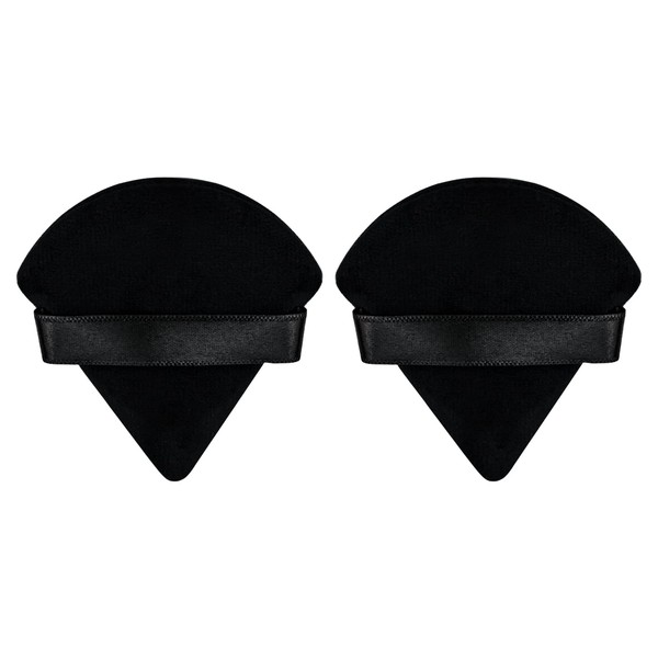 Flytianmy 2Pcs Triangle Powder Puffs, Face Makeup Puff for Body Loose Powder Beauty Makeup Tool Black