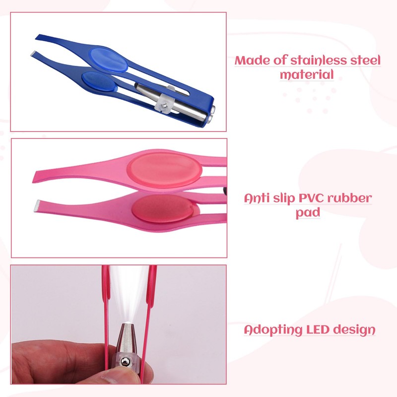 ăHigh-QualityăOur light up tweezers women for facial hair are made of stainless steel material,strong and reusable,and not easy to deform and fade.LED lights can be illuminated for a long time, which will not cause adverse effects on human skin or the environment.