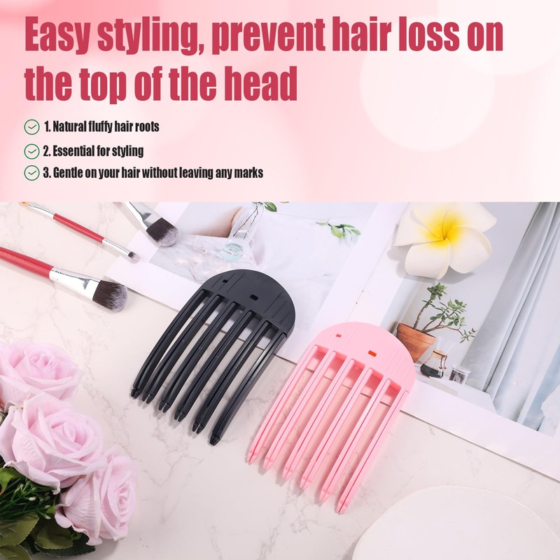 2pcs Wind Shaping Styling Combs for Curly Fluffy Bangs, 6-Tooth Instant Hair Root Lifting Clips Easy High Crown Volume Tools for Women's Natural Voluminous Volumizing Looks(Black, Pink)