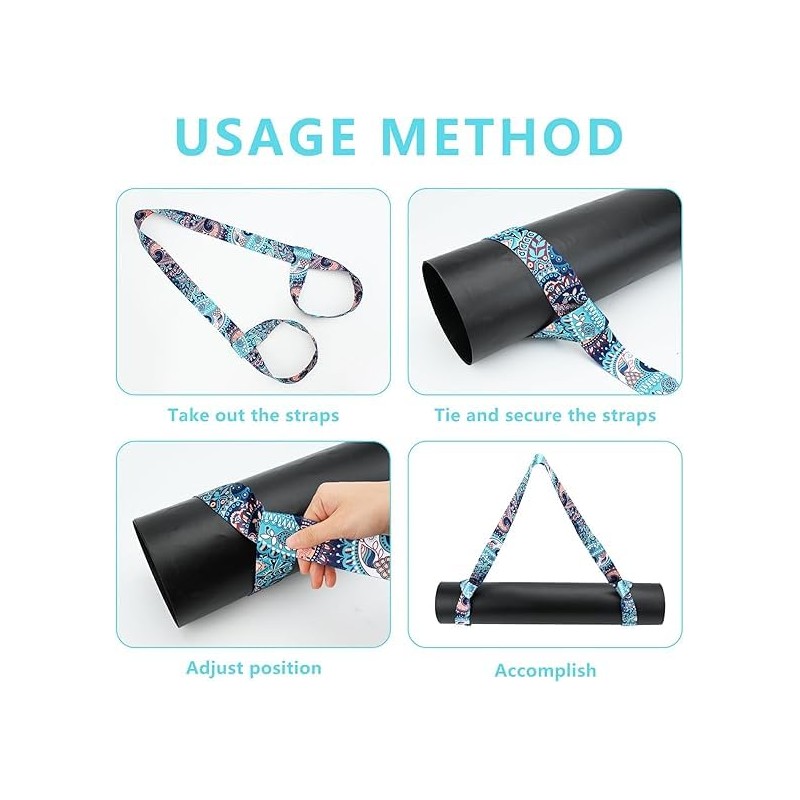 - The right size: The strap size of each yoga mat is about 170 cm and the width is about 3.8 cm. Suitable for most standard yoga MATS; When you're not using it, you can easily roll it up without taking up too much space in your yoga bag, gym bag, or backpack.