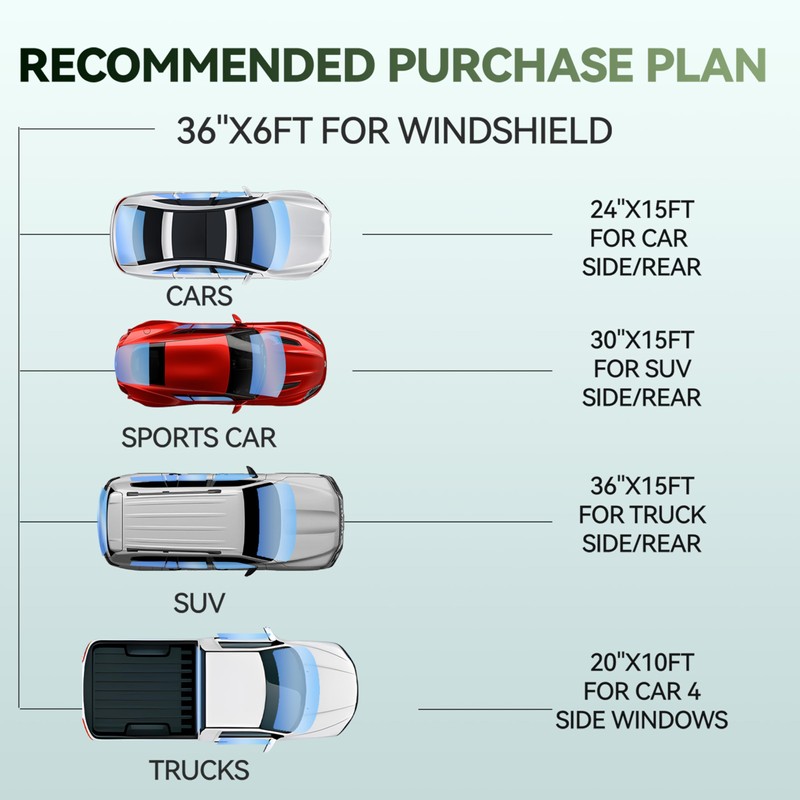 • EASY TO USE: Designed for all vehicles. Please keep the window clean before installation. Adjusting the shape and size of the window, follow the steps to apply the film so that the liner and the solution are completely bonded, please see the installation steps first before proceeding