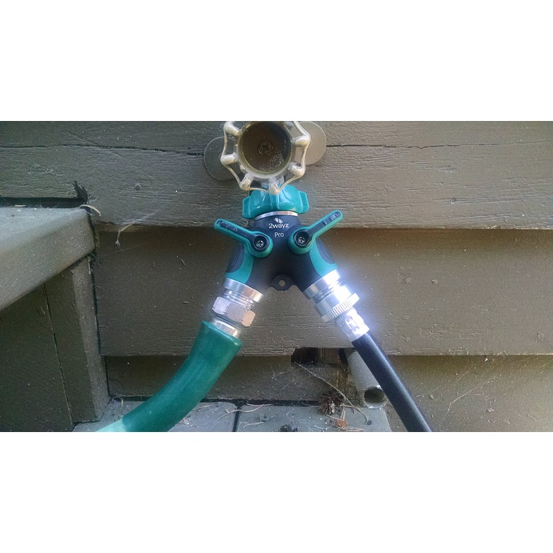 2WAYZ Hose Splitter 2 Way Heavy Duty Outdoor Faucet and Garden Connector - Water Spigot Splitter - Durable All-Metal Y Adapter with Shut-Off Valve - 4 x 4 x 1.5 Inches