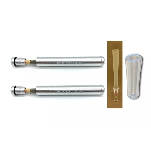 2X ALUMINUM pre rolled cone TUBE SEALED+1X glass cone tip