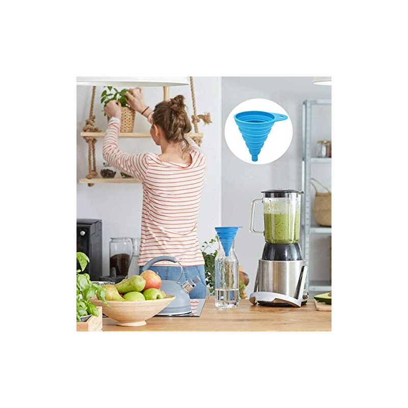 - Innovative collapsible funnel silicone, small and light, easy to store, does not take up kitchen space. Moreover, there is a hanging hole at the top of each funnel, and you can also hang it on a hook to make your kitchen look neat and tidy without clutter.