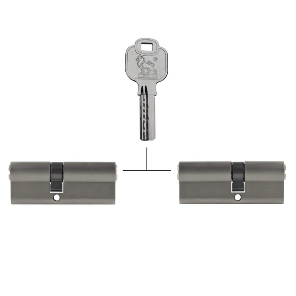 • 2 x simultaneous locking profile cylinders, 70 mm, 30/40, locking pins: 5, material: coated brass