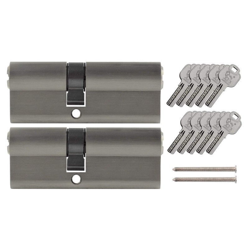 2x Profile Cylinder 70 mm 30/40 Keyed Alike Includes 10 Keys Metallic Silver