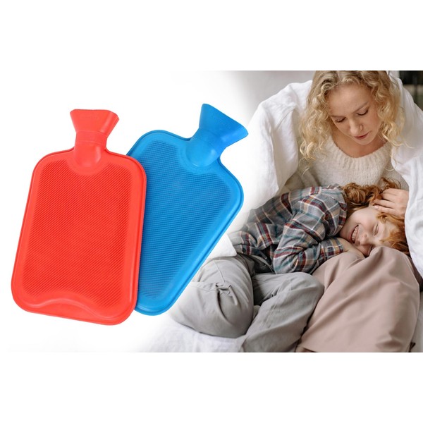 2x Wärmflasche 2L, Heizflasche, Wärmetherapie, Bettflasche Rot Blau ohne Bezug, Naturkautschuk, gegen Bauchschmerzen Rückenschmerzen Menstruationsbeschwerden (1x Rot 1x Blau)