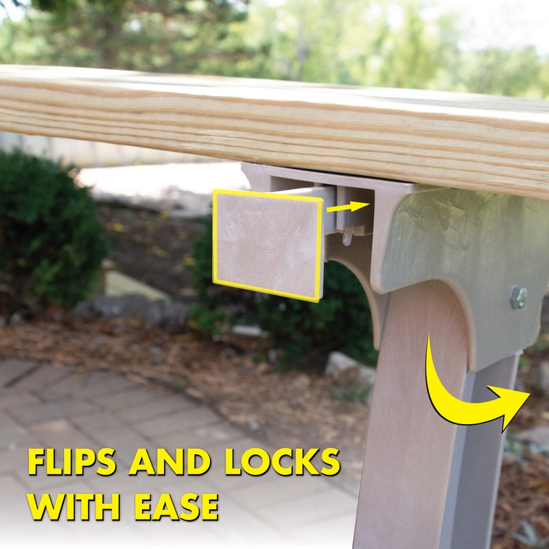 With Hopkins' 2x4basics 90110 flip top bench table just add 2x4s. Comes with everything else you'll need to make a comfortable and sturdy bench and table any size up to 8 feet long, you just supply the wood. Our patented slide lock secures your flip top bench table in seconds without tools. Convert from bench to table and back with ease. When you are finished, the table is easily converted back to a bench for space saving storage. You can even make two for a full size picnic table. Simple assembly is required with only a powered screwdriver, wrench, and saw. Only straight, 90° cuts are required with no miters or angles. Stain, paint, or finish the wood to fit your style and application or use treated lumber. All hardware is included (tools and 2x4s not included. ) The assembled unit stands 34 inches high (86cm) in the bench position and 31 inches (78cm) in the table position, both with a 17. 5 inch (44cm) seat height.
