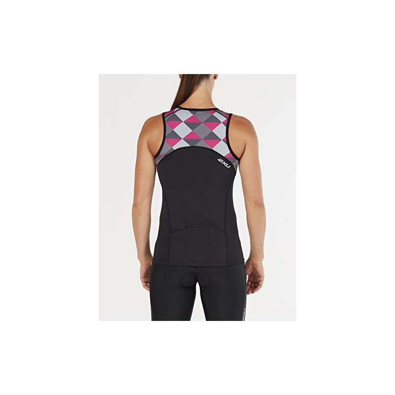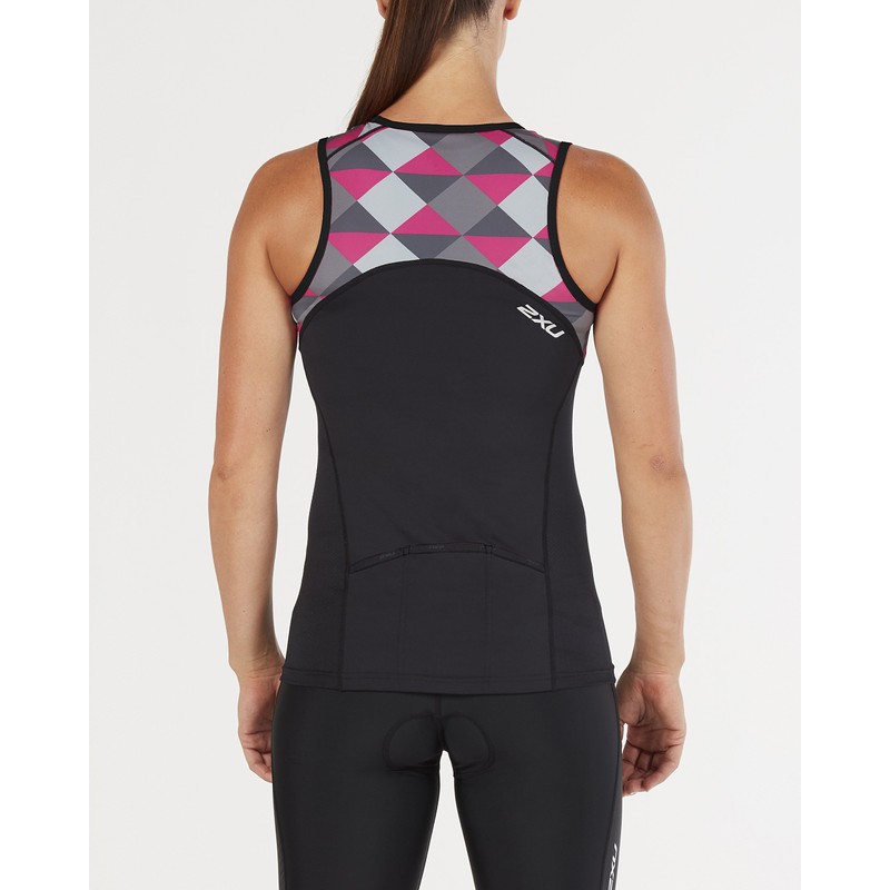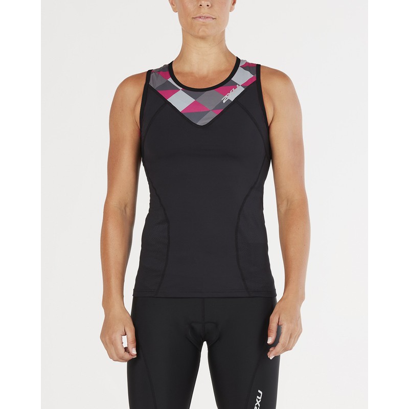 2XU Women Active Tri Singlet Tri Singlet - Black/Retro Tri Pink Peacock, L