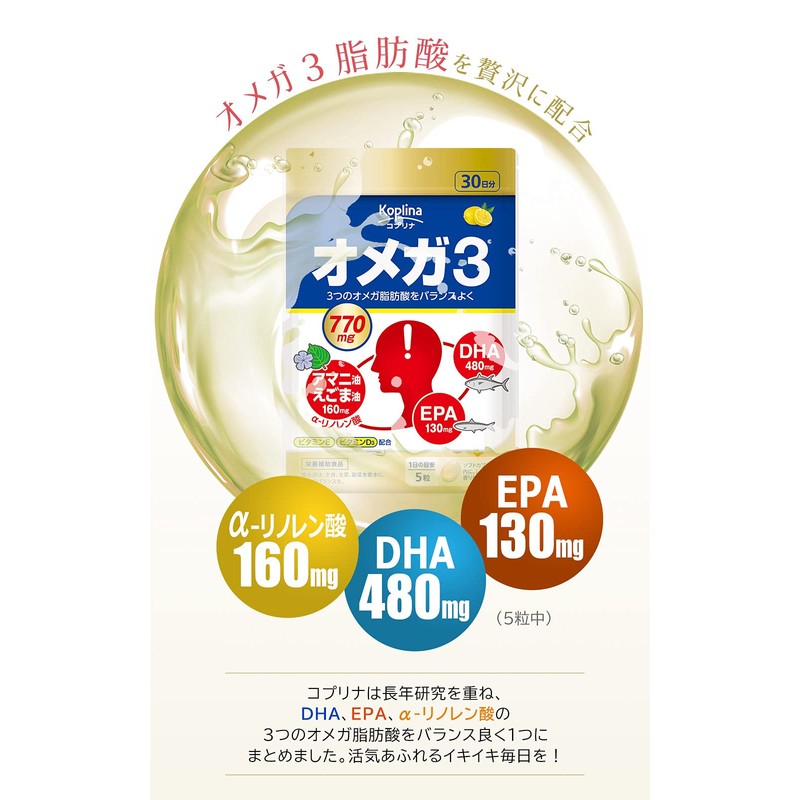 - ✅【弊社の商品が選ばれる理由】①魚と植物の栄養素をバランスよく配合 ②魚油の戻り臭を抑えるため、カプセル内にレモン香料を使用 ③5粒でオメガ3 770mg 配合( DHA 480mg + EPA 130mg + α-リノレン酸 160mg )