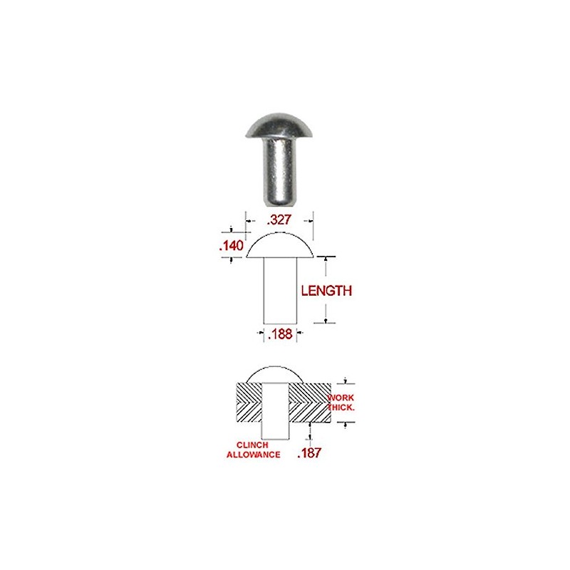 3/16" Diameter X 1-1/8" Length Solid Steel Round Head Rivet, Plain Finish, ANNEALED (Pack of 1/2 Pound - Approximately 46 Pieces)