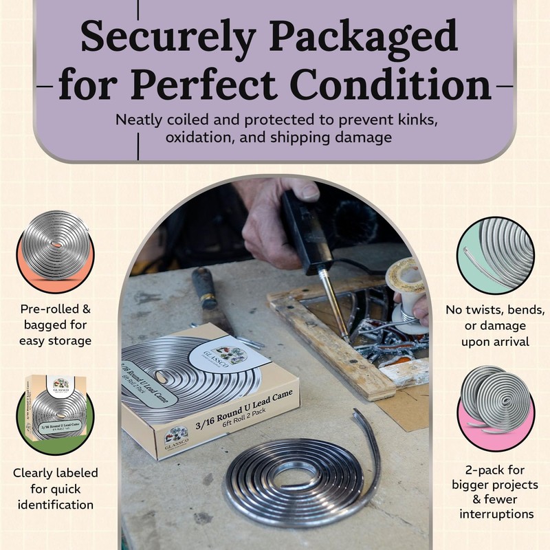 • Secure Packaging & Easy Handling – Pre-rolled into two 6 ft lead rolls, our hobby came is carefully packed to prevent damage during shipping. Conveniently unroll and start your next stained glass project.