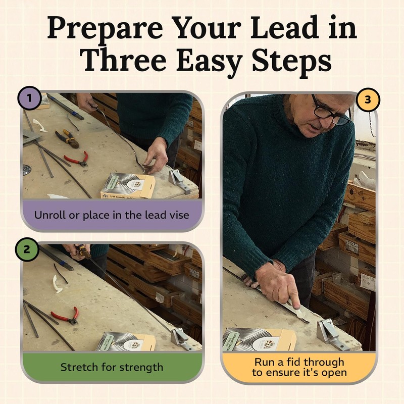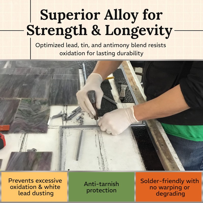 • Durable Alloy for Long-Lasting Use – Made with a blend of lead, tin, and antimony, these stained glass lead strips minimize oxidation and white dusting, maintaining their structural integrity and smooth finish over time.
