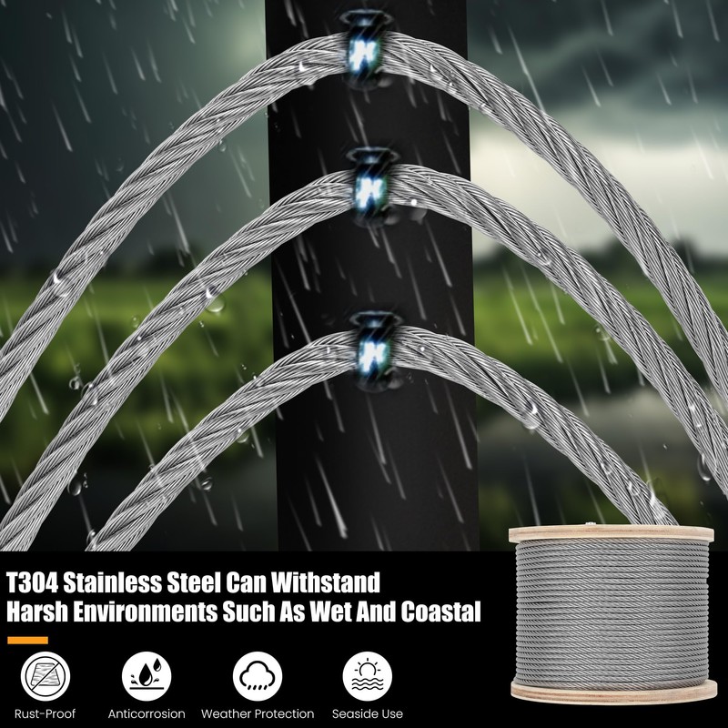 - Wide Range of Applications for Enhanced Capabilities: Elevate your lifting and rigging capabilities with our durable 3/16 stainless steel cable. Zip line finds extensive use in various industries as well as in residential settings. Whether it's for construction, marine operations, balustrades, garage doors, hanging systems, or outdoor structures, our wire rope are strong and versatile, enabling you to handle a wide range of projects with ease
