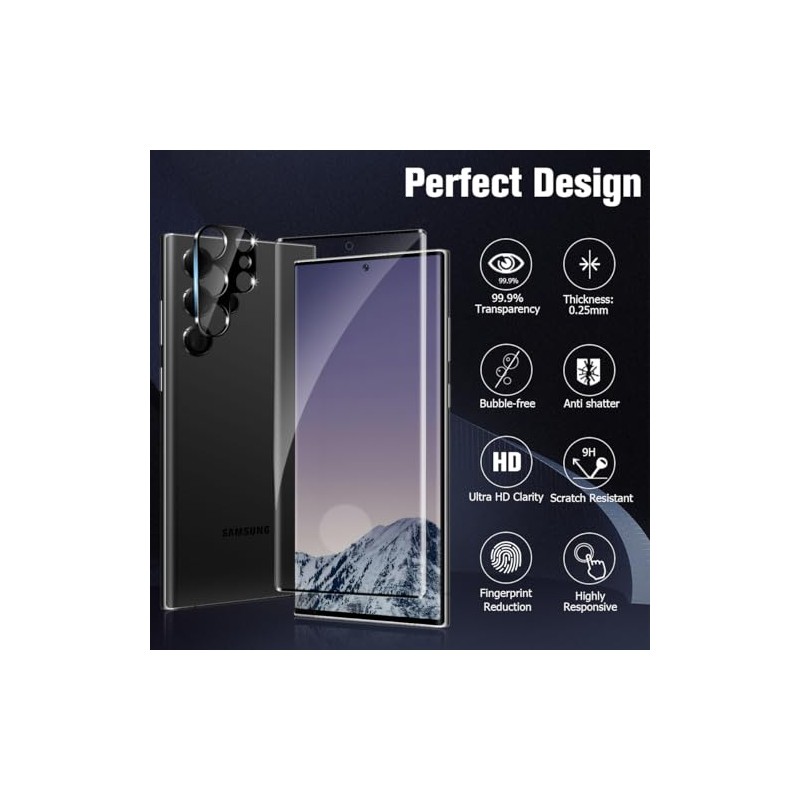 - Dual Protection Of Lens Protective Film: The Screen Lens Protective Film Of Glass Screen Protector S22 Ultra Adopts Good Adhesion Technology Which Is Easy To Stick And Not Easy To Fall Off The Lens Film Is Made Of The Same Material As Our Screen Protector For S22 Ultra With A Hardness Of 9H Protecting The Camera Lens For More Durability