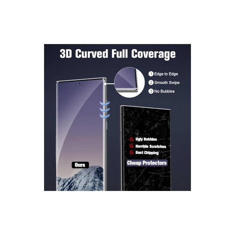 - High Definition 3D Curved Surface : Our Galaxy S22 Ultra Tempered Glass Screen Protector Uses Good Glass Material To Create Good High Definition The Tempered Film Closely Adheres To The Edges And Curved Corners Of The A Certain Degree Of Protection