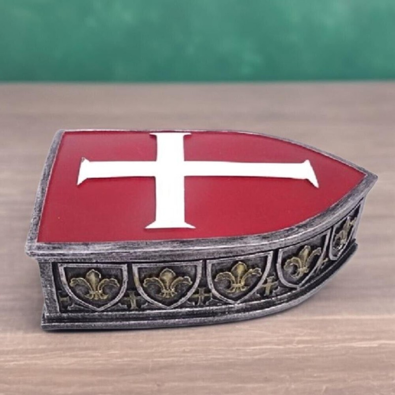 3.25"W Red Crusader Cross Trinket Box Ornament Home Decor Unique Gift