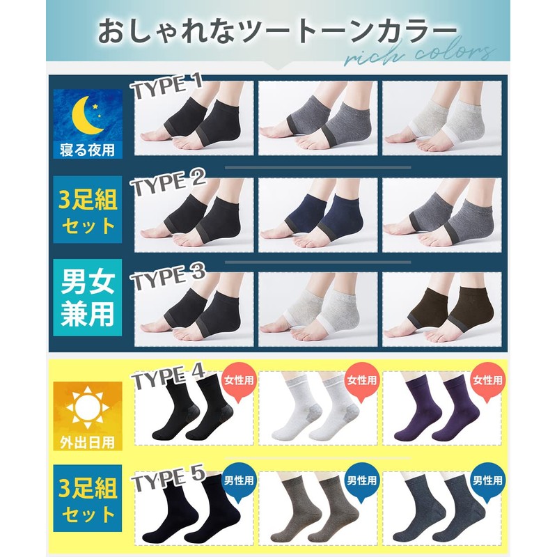 【3足組】かかとケア靴下 かかと保湿ソックス【3倍保湿効果・保湿最大化を実現・着用時の異物感なし】角質ケア かかとつるつる かかとソックス ひび割れ対策 ツルツル 保湿保護 かかとサポーター 保湿 (Bセット【男女兼用・夜用】)