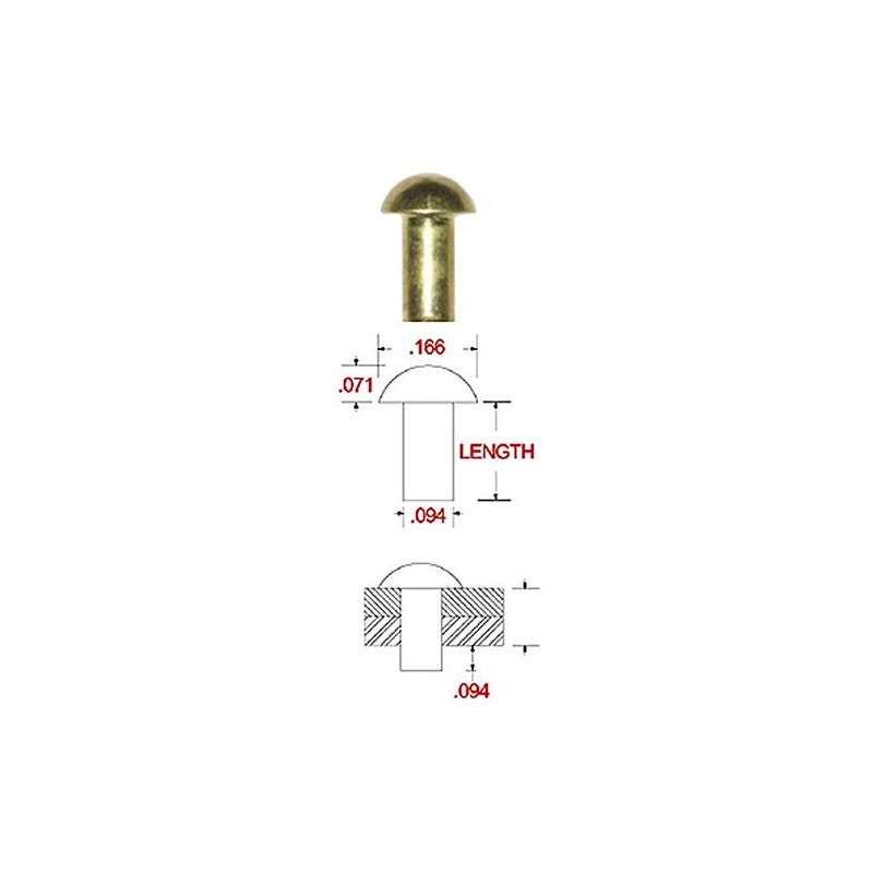 3/32" Dia. X 7/16" Length, Brass Solid Rivet, Round Head, Plain Finish (Pack of 100 Pieces)