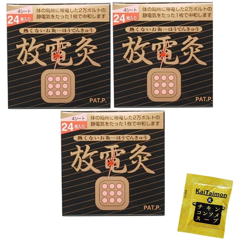 【3個セット】放電灸 4シート 24枚入り kaitaimon オリジナル チキンコンソメスープ付き 火を使わないお灸