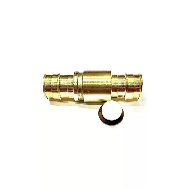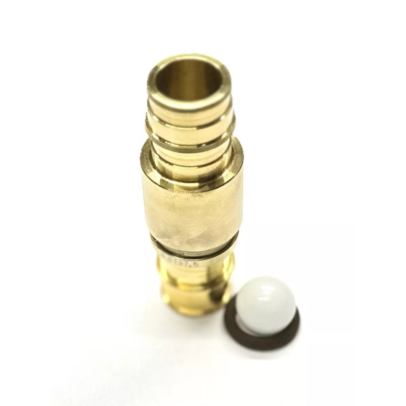 Push-On Barbed 3/4” inch Check Valve Brass body, PTFE Solid Ball, Viton/FKM “ O “ Ring. Max-Flow Designed, 1-PSI Cracking pressure. For clean Fluid Only, for dirty fluid use filter before. Must be installed in a VERTICAL configuration.